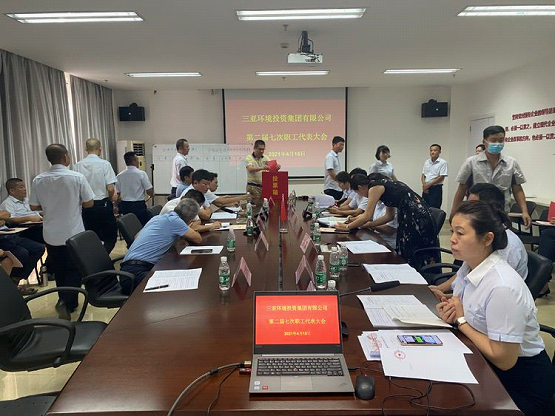 4月15日下午,三亞環(huán)投集團二屆七次職工代表大會在集團公司六樓會議室召開,公司職工代表共計34人參加大會,特邀請三亞中法供水有限公司、三亞環(huán)境水質(zhì)凈化有限公司等7家公司的工會主席、職工代表和代表15人列席大會,并參加小組討論。職工代表袁文革董事長、張秀標(biāo)總經(jīng)理等公司領(lǐng)導(dǎo)參加大會,會議由工會主席羅凱主持。