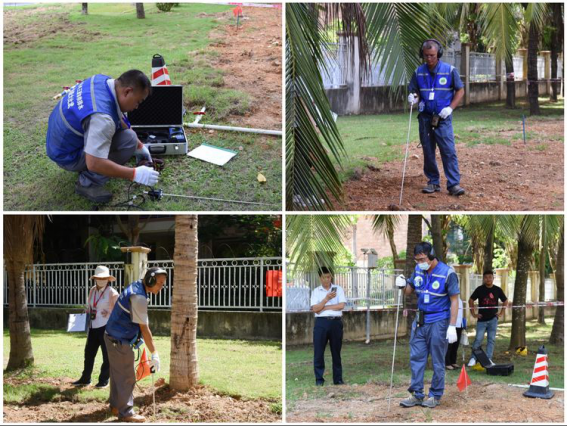 供水管道工的比賽項目共分為水管探漏、DN20水表組加工安裝及閥門盲裝盲拆三個小項。在水管探漏比賽現場,選手們手持機械式聽音桿,頭戴電子聽漏儀,正在對地下鋪設的DN32管進行探漏,選手們每探出一個漏點,都用小紅旗做好標志,誤差在20cm以內即算正確探漏。在探漏完成后,設備的正確回收拆卸也是比賽的內容之一。
