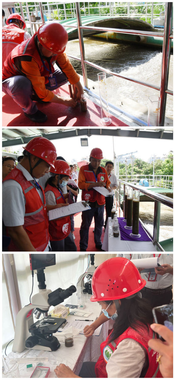 城鎮(zhèn)污水處理工競賽項目分為污泥沉降比檢測、便攜式測溶解氧及活性污泥生物相鏡檢。選手們需要完成曝氣池的混合液取樣,認真觀察并準確記錄反應沉降速率、沉降性能和泥質結構,同時要熟練掌握便攜式溶解氧和活性污泥生物相鏡檢的操作流程。